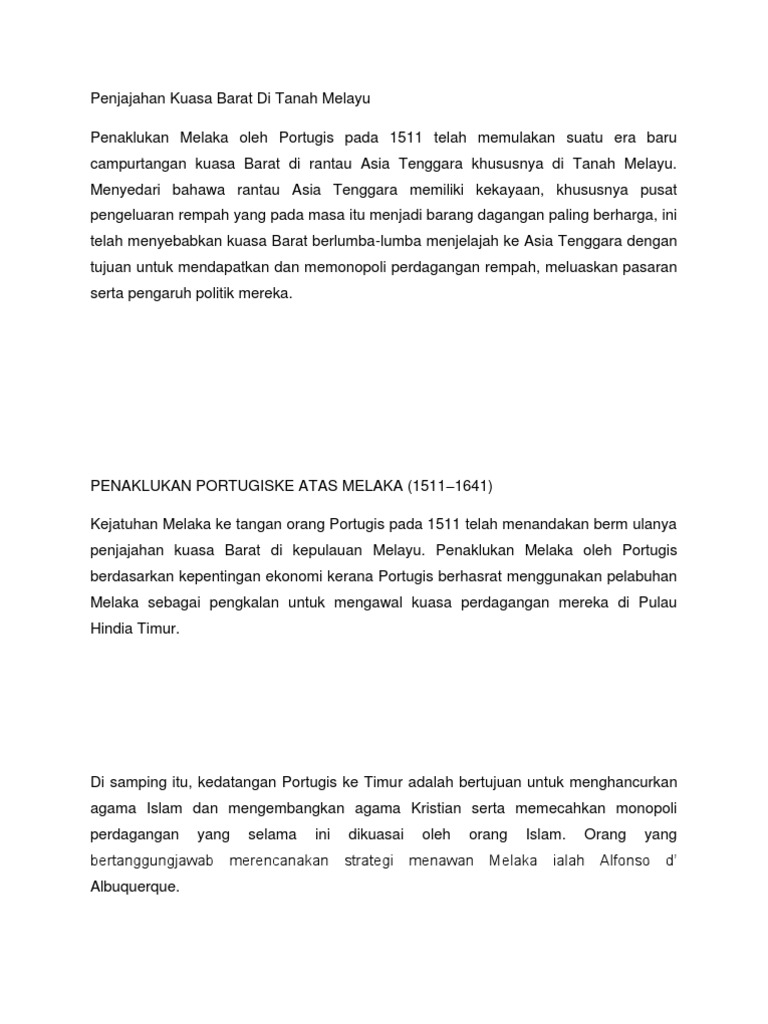 Penjajahan Kuasa Barat Di Tanah Melayu Pdf